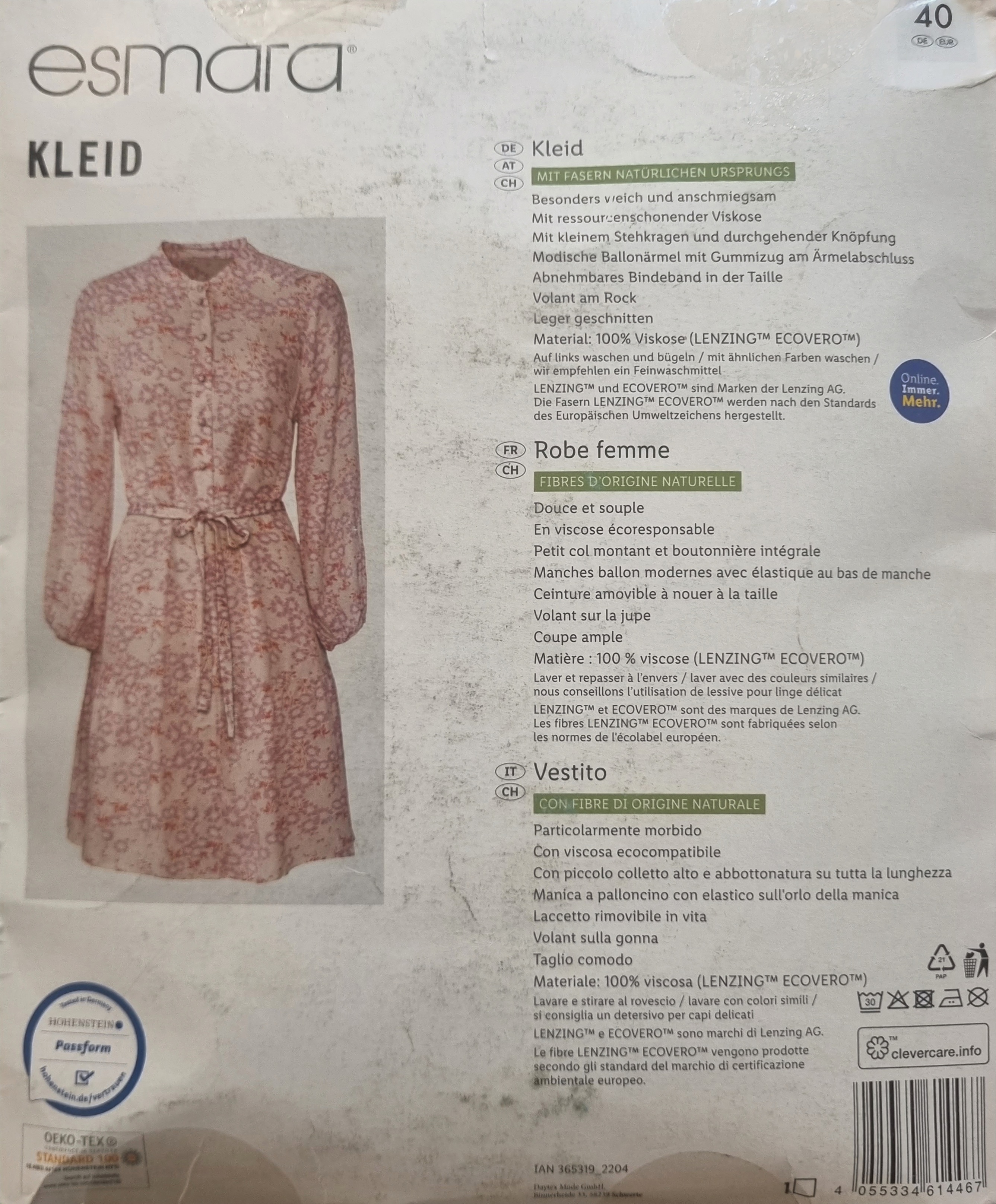 متاسفانه این کالا در حال حاضر موجود نیست. میتوانید از طریق لیست بالای صفحه، از محصولات مشابه این کالا دیدن نمایید.پیراهن گلدار زنانه Esmara با طراحی لطیف و زنانه، گزینهای عالی برای خانمهایی است که به دنبال استایلی خنک، شیک و در عین حال راحت هستند. این پیراهن از الیاف ویسکوز باکیفیت تولید شده که با فناوری EcoVero سازگار با محیط زیست ساخته شده و در عین نرمی، بسیار تنفسپذیر است.